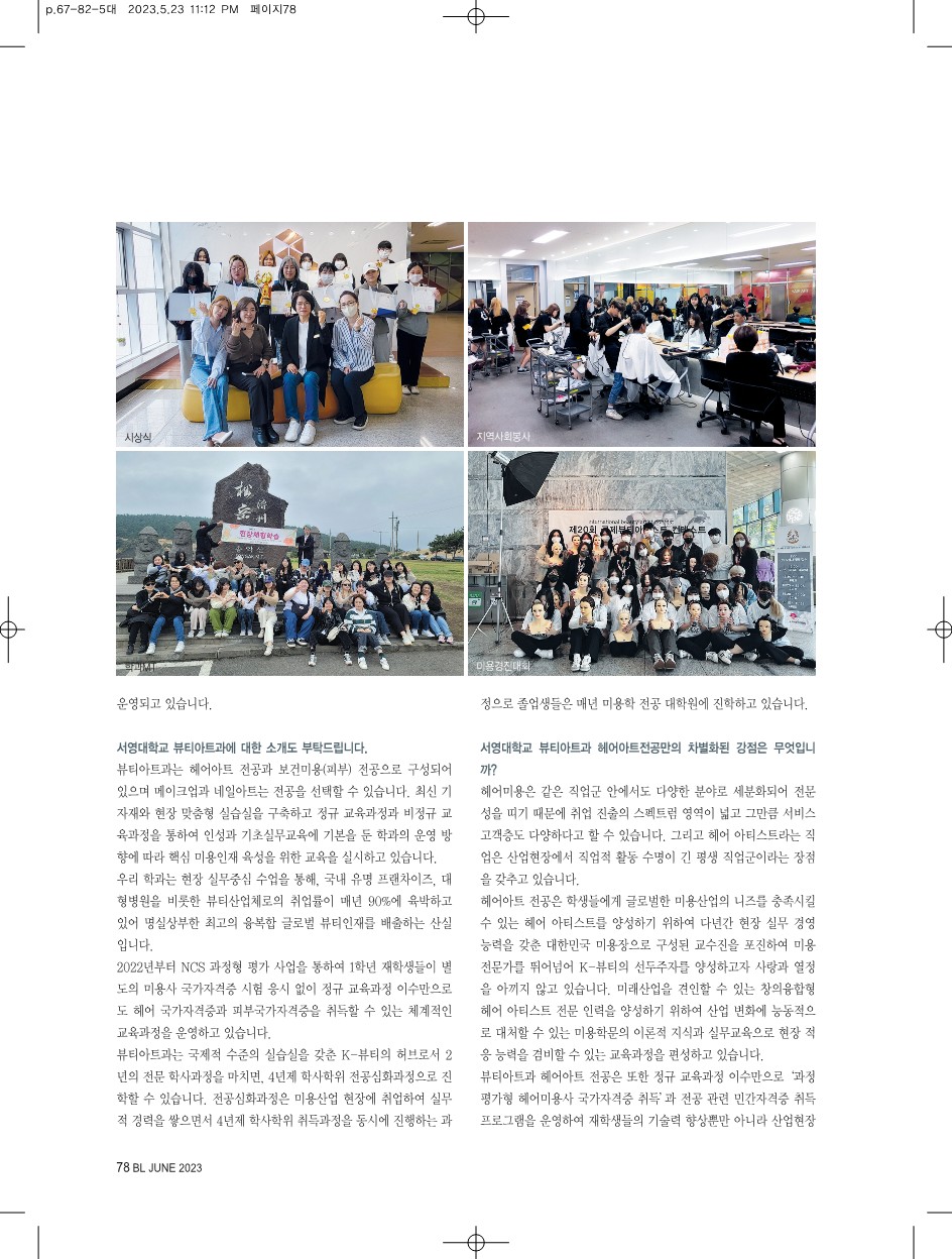 Beauty life(뷰티 라이프)매거진 미용학과 특집(학과 홍보)