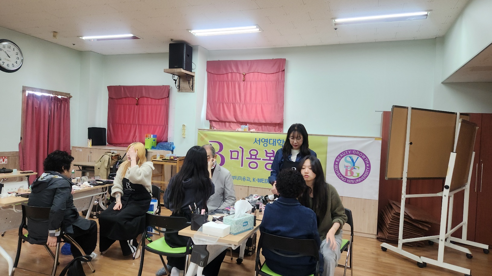 광주공원 노인 복지관에서 주최하는 행복나눔 서포터즈에  뷰티미용과 1~2학년이 참여해 어르신들의 인생사진관 촬영에 도움이 되는 메이크업을 전담했다.