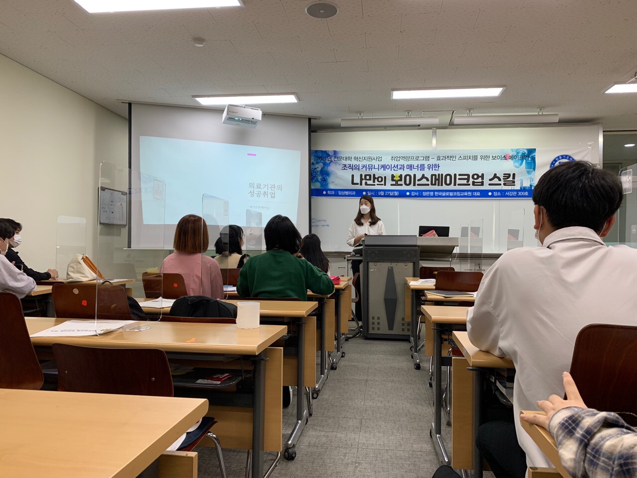 우리 대학 임상병리과는 9월 27일 3학년 학생들을 대상으로 성공적인 취업을 위한 "나만의 보이스메이크업 스킬"이라는 주제로 특강을 진행하였습니다