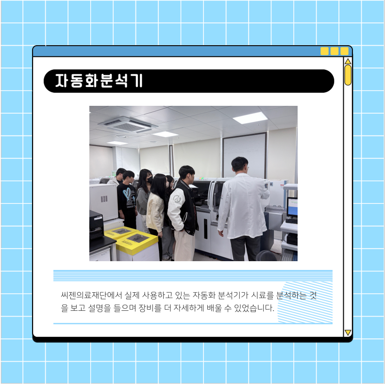 서영대학교가 최근 임상병리과 신입생을 대상으로 2025년 10월 31일 씨젠의료재단 광주호남검사센터 현장견학 프로그램을 실시했다. 씨젠의료재단 광주호남검사센터는 2022년 6월 개원해 종합병원 및 일반 병·의원 등 의료기관을 대상으로 진단의학검사, 분자진단검사, 병리검사 등의 분야에서 검체검사 수탁사업을 운영하는 질병검사 전문의료기관이다. 이번 현장견학을 통해 서영대 임상병리과 신입생들은 진단검사의학부, 분자진단검사부, 병리검사부의 검사과정을 참관하며 씨젠의료재단 광주호남검사센터의 역할과 기능에 대해 알아보는 시간을 가졌다.