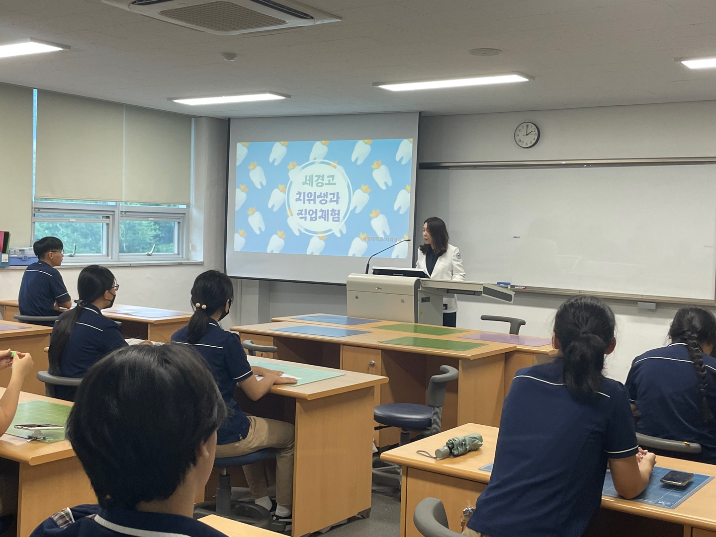 세경고등학교 학생들을 대상으로 치과위생사에 대한 직업 소개 및 직업체험을 해보는 시간을 갖었습니다 ^^