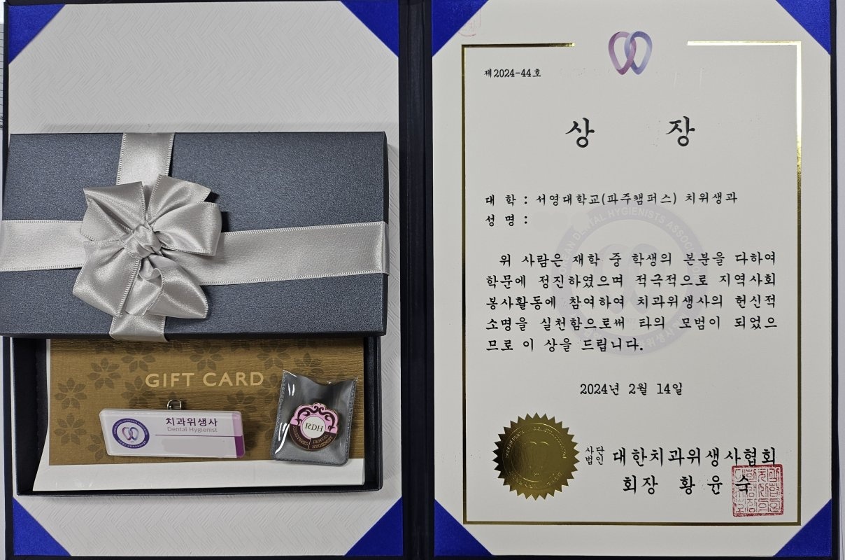 대한치과위생사협회 협회장상과 골든스케일러상을 수여받았습니다♥