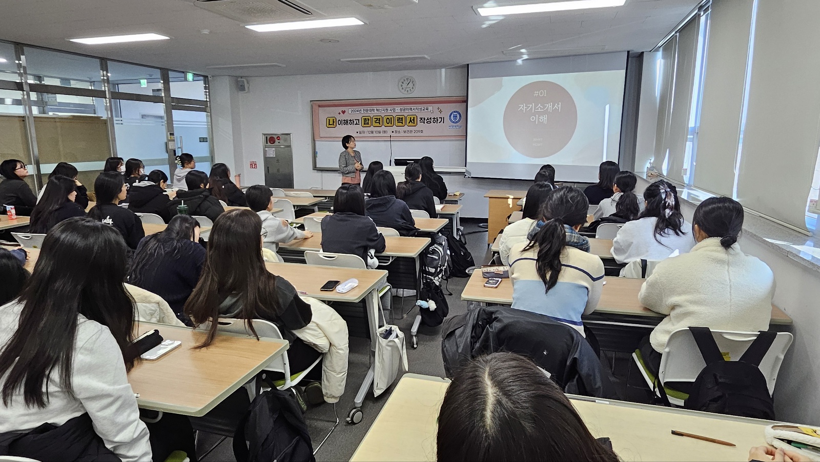 "나 이해하고 합격이력서 작성하기"라는 주제로 이력서 및 자기소개서 작성법에 관한 특강을 진행하였습니다.