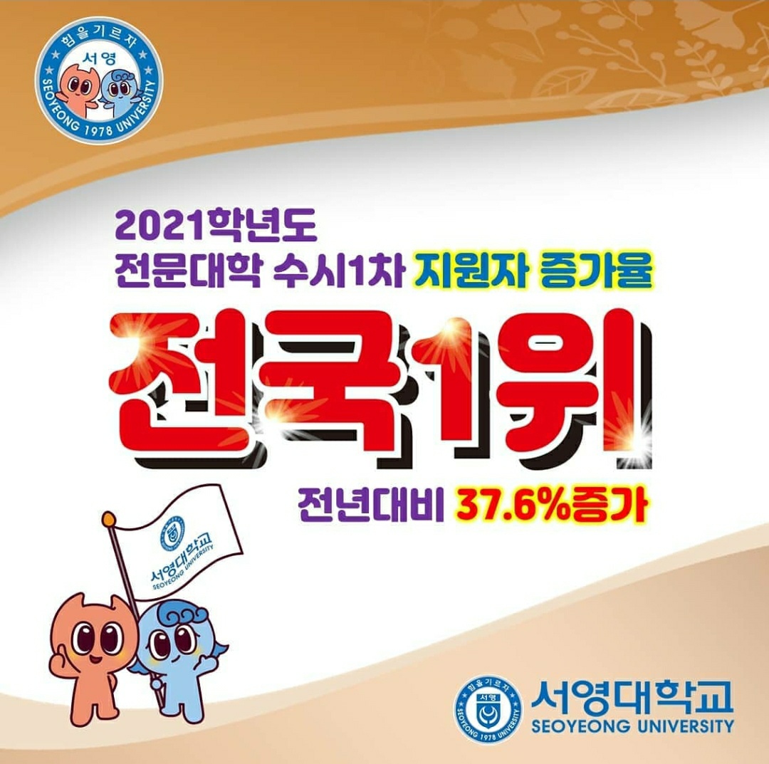 서영대학교 전문대학 수시 1차 전년대비 지원자 증가율 전국 1위를 달성